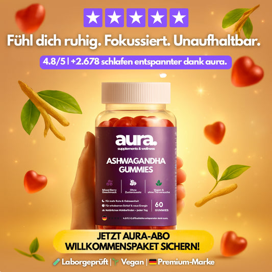 Aura™ Ashwagandha Gummies – Ruhe, Fokus & besserer Schlaf in 2 leckeren Gummies | 60Stk.